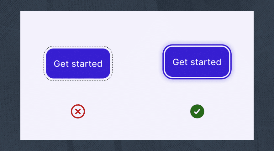 - Use a solid 2px (minimum) outline around the component.